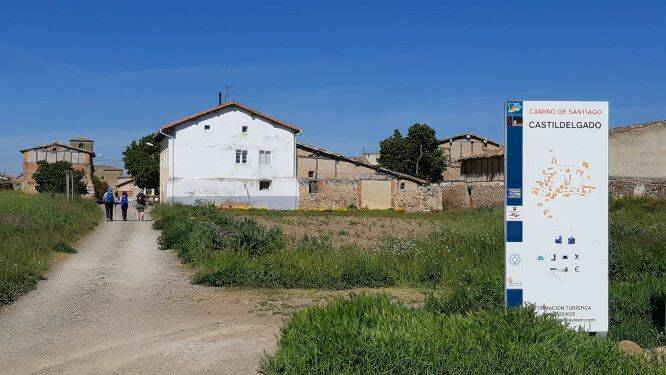 No enclave, onde os peregrinos encontrarão uma padaria, uma mercearia com uma máquina de bebidas à porta e um banco. O caminho continua em direção à Plaza Mayor, onde existe uma interessante fonte pública de 1857. O viajante despede-se de Castildelgado ao longo da rua Camino de la Cuesta e, após outro cruzamento com a estrada, continua paralelamente à estrada nacional.