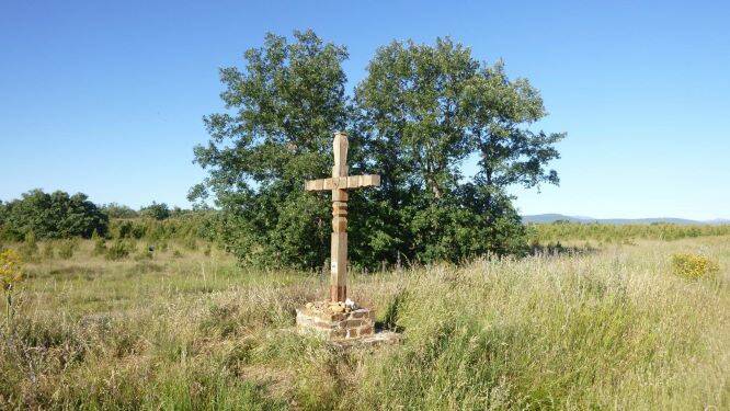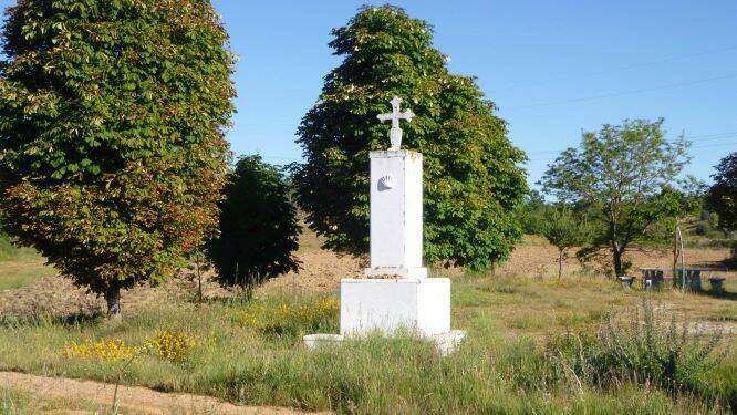 Os ciclistas terão de continuar por estrada devido à dificuldade de seguir esta via, que, em qualquer caso, após a subida, se reconeta com o asfalto. O caminhante avança junto a uma cerca adornada com dezenas de cruzes de madeira, construídas e depositadas no local pelos milhares de peregrinos que por ela passaram. Este é um costume típico de toda a rota jacobeia. Após a subida e mais de meio quilómetro de cruzes depois, a vedação desaparece e o caminho volta a estreitar-se para continuar paralelamente à estrada.