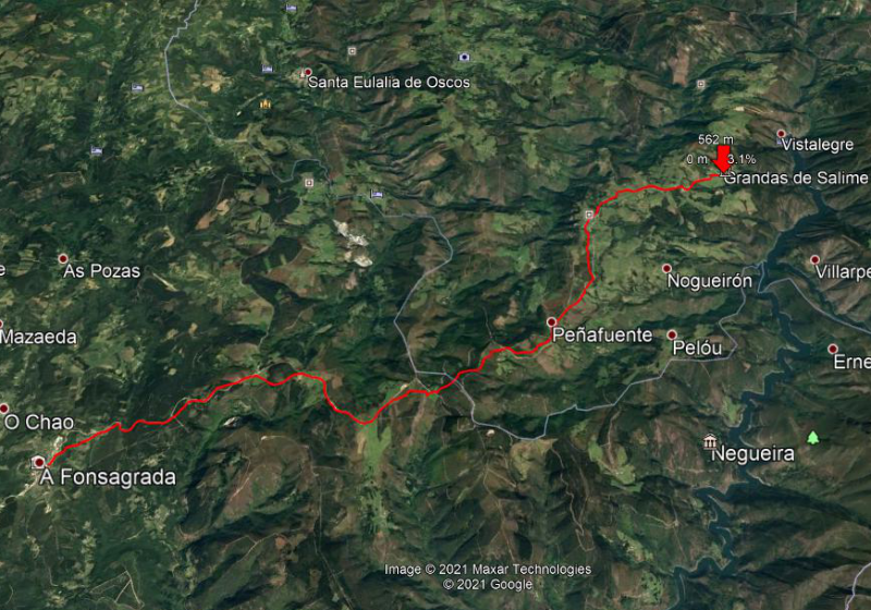 Se chegámos incólumes a Grandas de Salime, o túmulo do Apóstolo São Tiago está ao nosso alcance. Hoje avançamos por um território mais dócil do que o das etapas anteriores, através de zonas rurais, agrícolas e pecuárias, passando por numerosas pequenas localidades, algumas com serviços para peregrinos. O dia é marcado pela subida, longa mas suave e progressiva, ao Alto del Acebo, uma cadeia de montanhas que separa as comunidades das Astúrias e da Galiza.