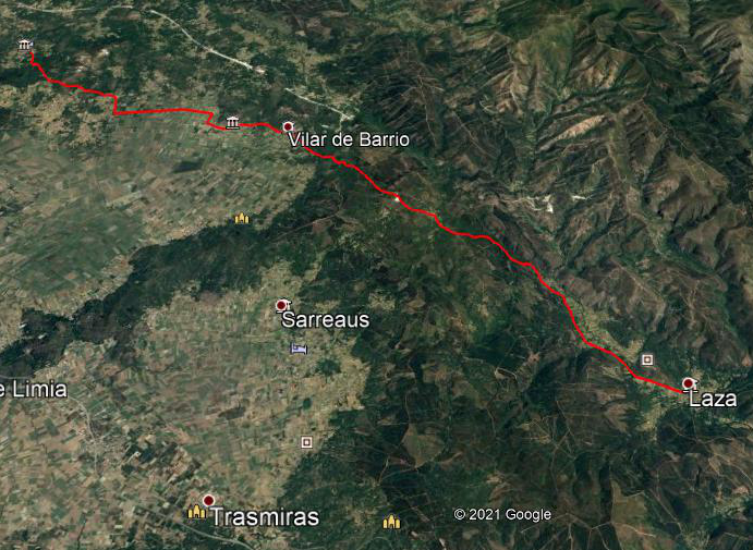 Etapa longa, com belas paisagens e declives significativos; podemos encurtá-lo passando a noite no bom albergue de Vilar de Barrio. Como ontem, o dia continua através de zonas rurais e montanhas até Vilar do Barrio, com uma subida íngreme (425 metros) de Tamicelas até à cruz do monte Talariño (965 m), passando por Alberguería; mais adiante, de Vilar de Barrio até Bobadela avançamos através de uma planície agrícola, e de Bobadela até ao fim da etapa, continuamos monte abaixo.