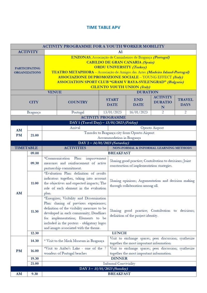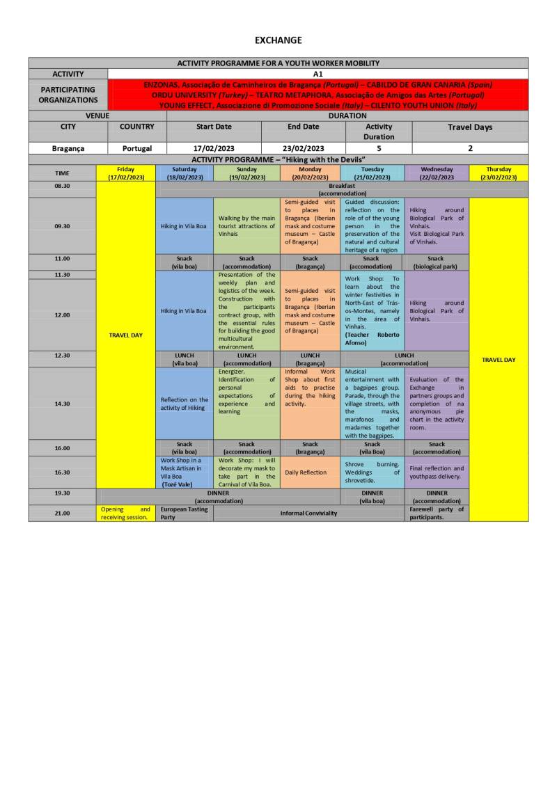 The APV for preparation of the exchange that will take place between the 17 and 23 of february in the locality of Rio de Fornos, Vila Boa and Bragança, took place from the 13 to the 16 of january in Bragança.