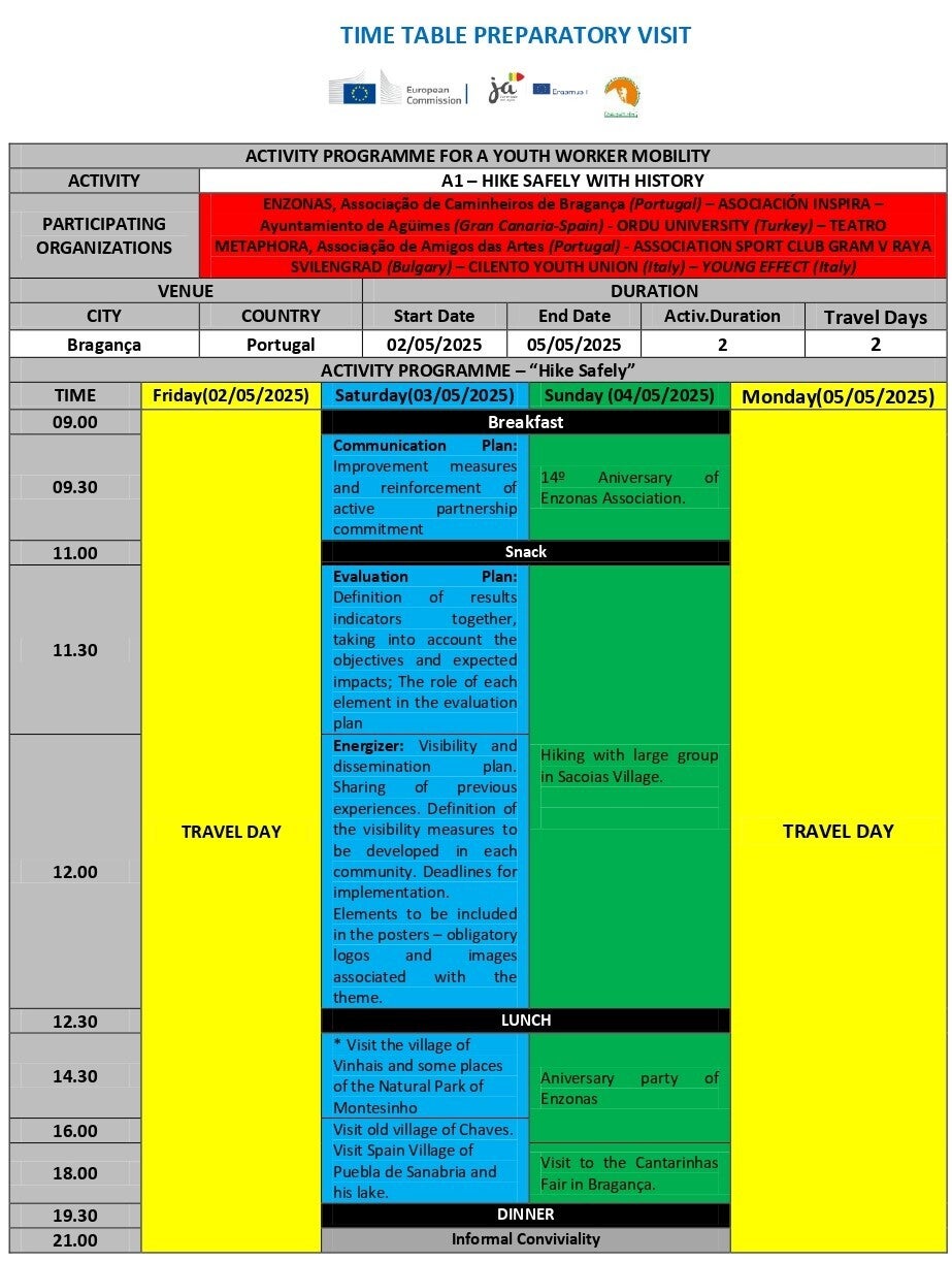 The Preparatory visit of the exchange that will take place between 29 june and 6 of july 2025 in the location of Vinhais, took place from the 2 to 5 may in Bragança.