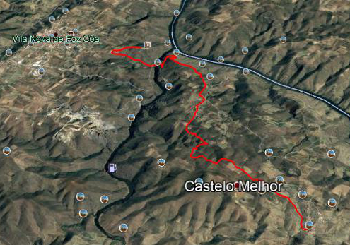 Pela GRVC, inicia-se aqui a aproximação à foz do rio Côa, por áreas extensas de vinha, e descendo em zig-zag por caminho de pé posto até à ponte rodoviária sobre o rio Côa. Aqui é possível aceder a um desvio não marcado para visita à foz do rio Côa, onde o Côa entra no rio Douro, e à ponte ferroviária que a atravessa.