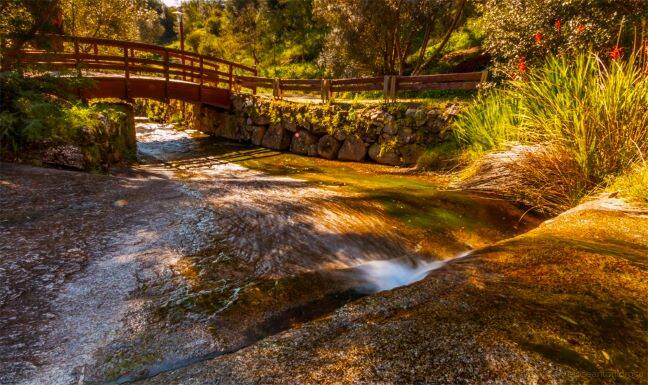 A passagem pela Ribeira de Monchique apela a uma pausa e marca o início de uma caminhada até à Picota sempre em ascensão. Caminhando ao lado da margem da ribeira é a vegetação ripícola que ganha destaque, uma paisagem de beleza ímpar, mas que em períodos de grande chuva poderá tornar difícil a sua passagem e obrigá-lo a descalçar as botas. O percurso começa assim a ganhar altitude e, em breve, a paisagem começará nova¬mente a mudar. À chegada à Fonte Santa, surpreenda-se com o antigo pequeno complexo termal, com água a 27ºC, que hoje em dia é propriedade da Câmara Municipal de Monchique.