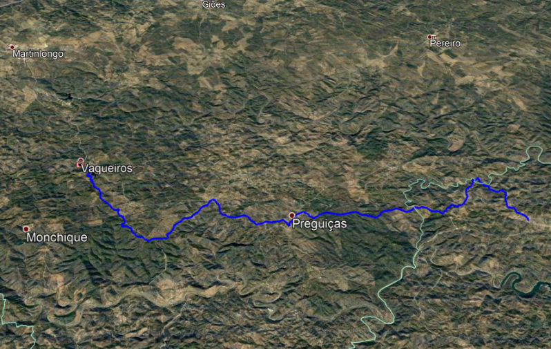 É em Furnazinhas que se inicia o 3º setor da Via Algarviana. Após atravessar o monte rumo a Norte, o itinerário conduz o caminhante por uma paisagem acidentada, com descampados, pastagens, extensos estevais e, pontualmente, pequenas hortas ainda em uso pelos locais. O relevo é acidentado e entrecortado por várias linhas de água, de pequena dimensão. Surgem, ocasionalmente, pequenos povoamentos de pinhal bravo. O caminhante irá encontrar pequenos aglomerados habitacionais, alguns quase desabitados, como o caso de Monte Novo, junto da estrada nacional, um dos locais mais elevados da zona (215m). Segue-se Monte das Preguiças, onde existe uma pequena barragem e um excelente ponto de observação da região, Malfrades, onde ainda podemos encontrar algumas casas com traça tradicional, e, por fim, Vaqueiros, sede de freguesia.